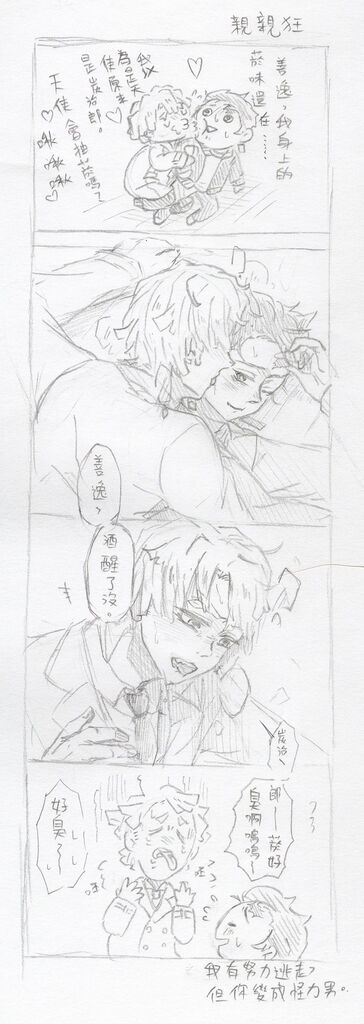 7 40 善炭。歡迎回來啾啾。 炭會抽煙、善逸喝醉😇 21/11/25 09:10