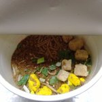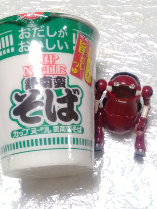 お腹一杯お蕎麦を食べたくなって「そば」と書いてあるカップ麺を掴んだらカップヌードルと書いてあって… (そば?)と気になって買って来ました。ココカラハガスはカタカナなのね(外国の方向け?) 見た目はカップヌードル形状?でしたが完全に蕎麦でした。おつゆも蕎麦つゆ。 #メカトロウィーゴ