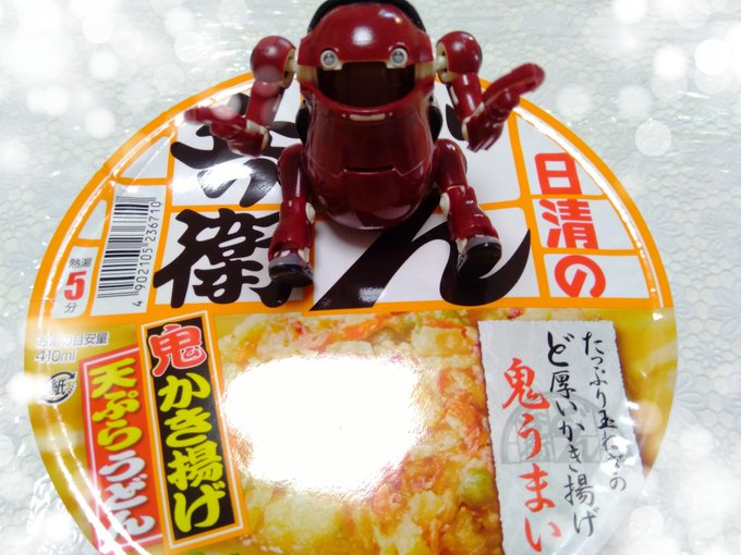 私のマストバイ、どん兵衛の鬼かき揚げ。たまねぎたっぷりの大きなかき揚げ。見付けたら毎度買う。 #メカトロウィーゴ