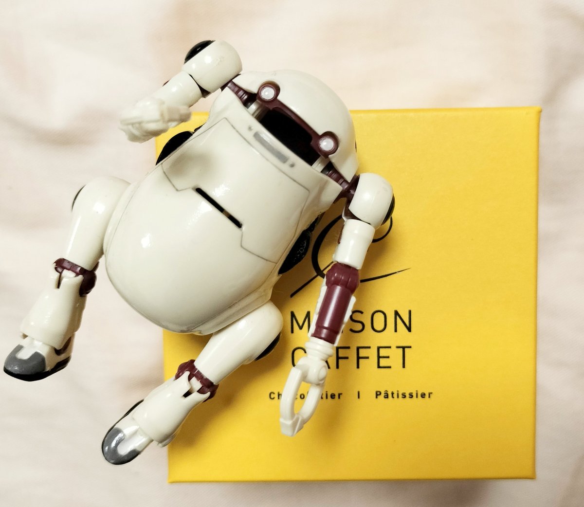 先月ニキビ出来てから自制してたけど、自分用に買ってあったホテルのバレンタインチョコをジャーン!と開けました。 4枚目「えへへ、美味しそうだね」と言ってるみたいな #メカトロウィーゴ twitter.com/stu_see/status…