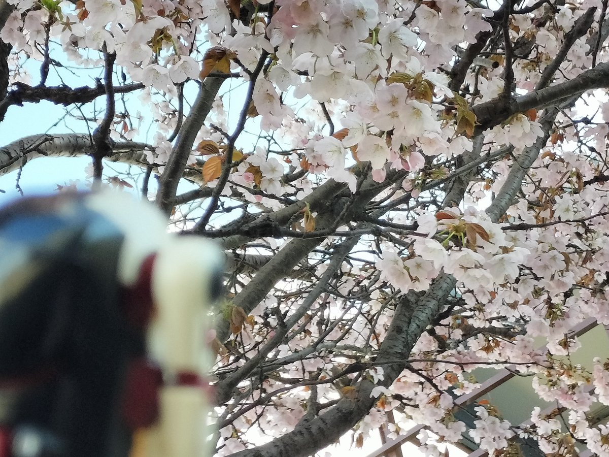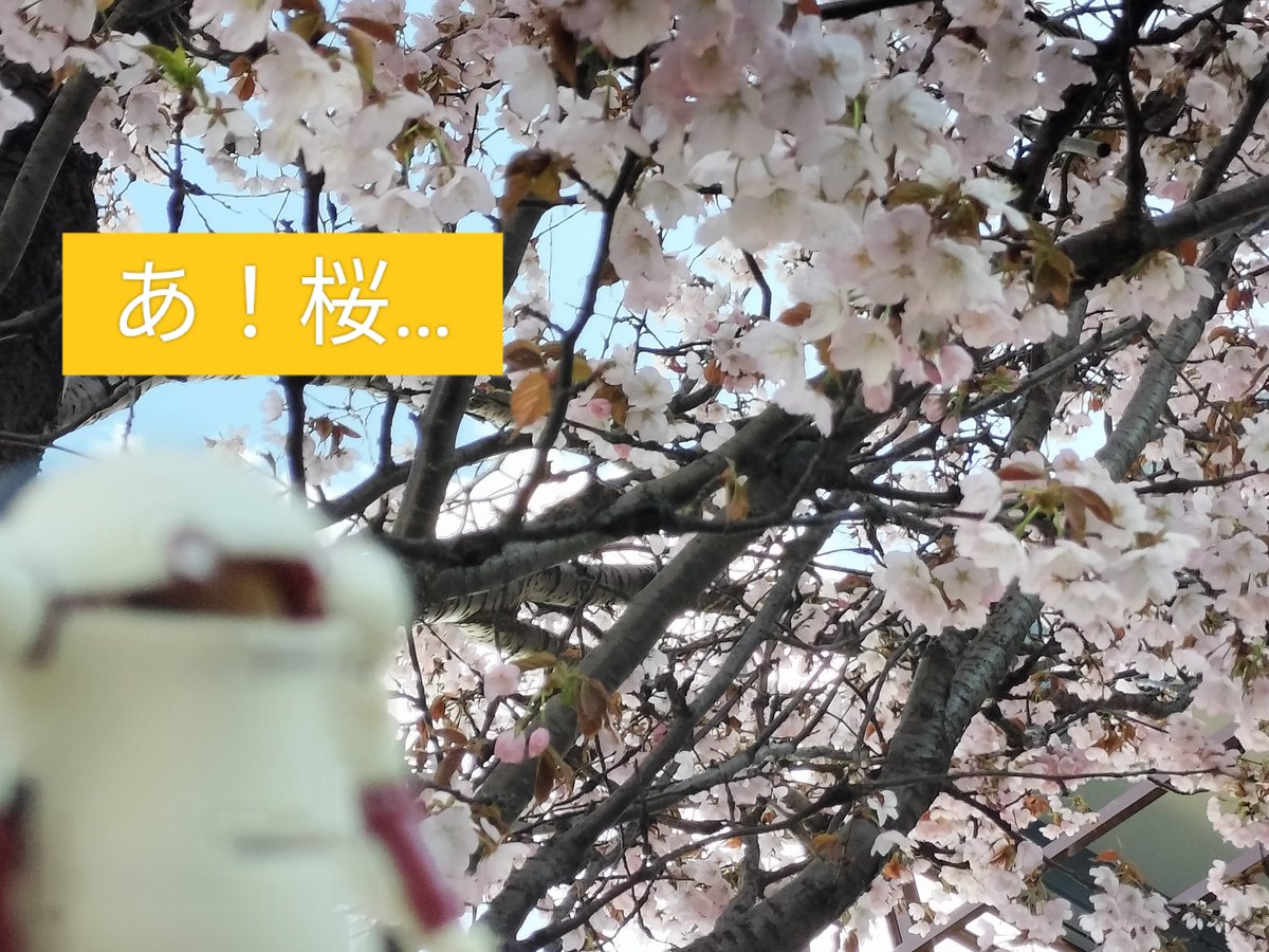 サクラ咲いてました。 (景色とウィーゴ両方にはピント合わないんだよね〜…)と2枚目+3枚目。 #メカトロウィーゴ