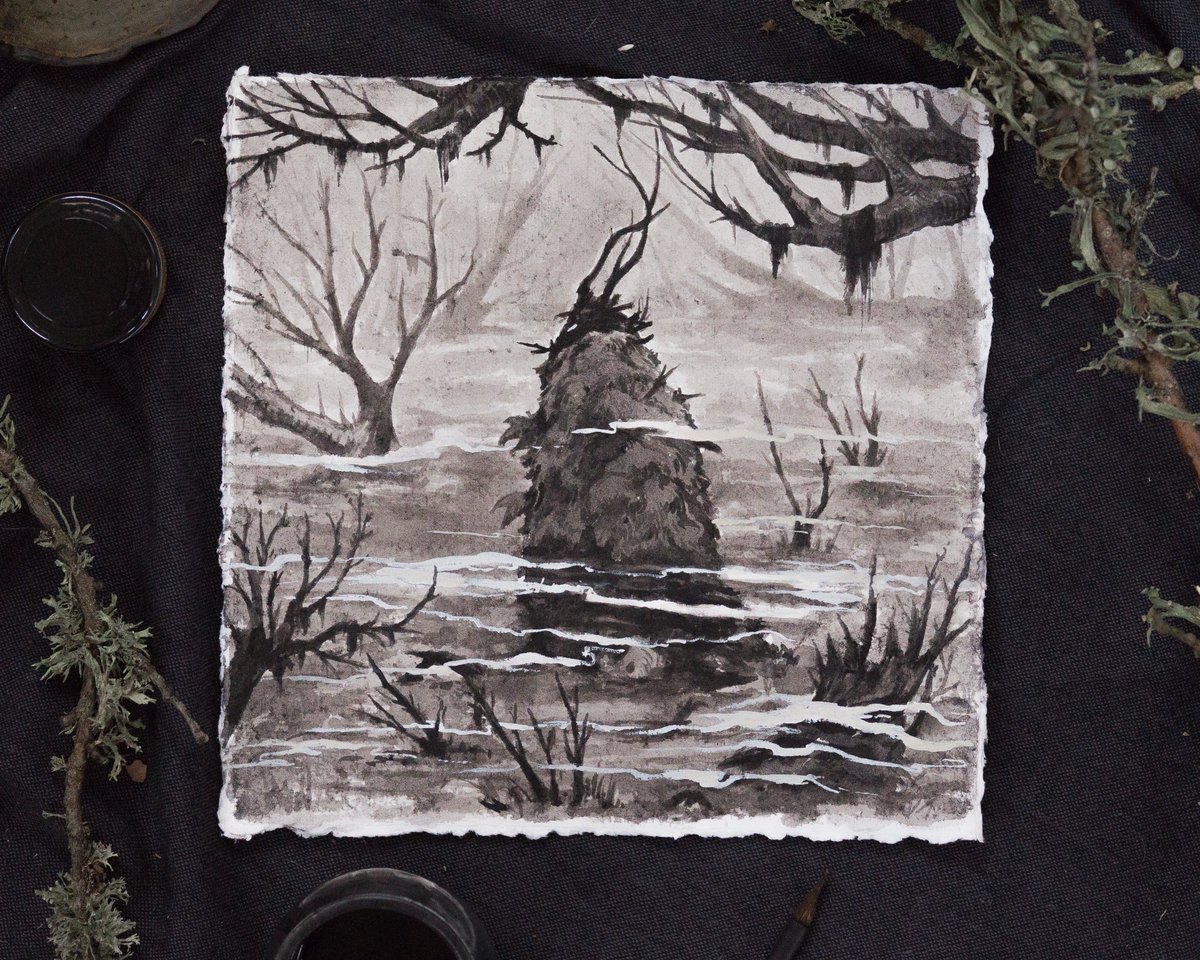The 5th painting for @drawtober - Bewitched bog!💀 Didn't really plan it out beforehand,so sort of improvised with everything 👁️ #drawtoberbewitchedbog #inktober2022