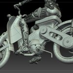 60 237 去年から作っているシリーズの小型バイクのモデリングがほぼ完成しました。今回はカブリスペクトです。#ZBrush #ZModeler 19/03/11 23:58