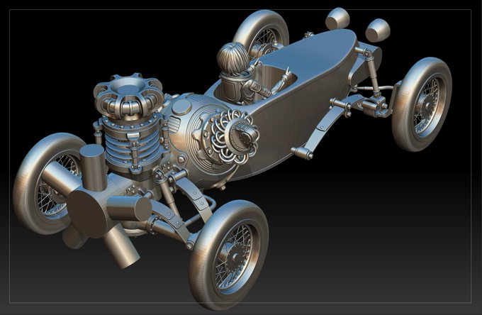 オリジナルデザインの四輪車、モデリングほぼ完成しました。#ZBrush