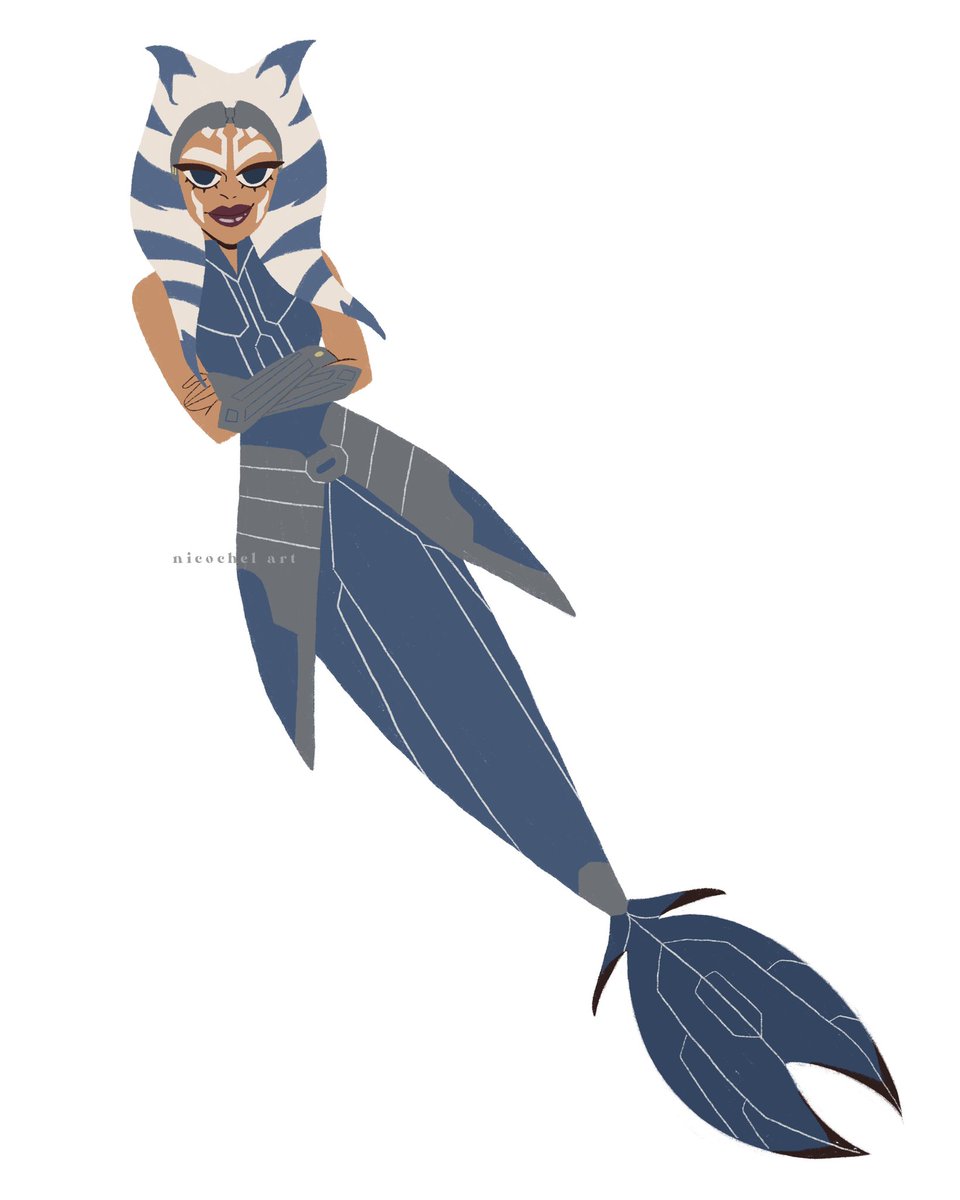 happy #tanotuesday and #mermay 💙 today is dedicated to my rendition of mermaid ahsoka! pure coincidence that it matches @HerUniverse restock of their ahsoka inspired activewear 💙🤍🧡