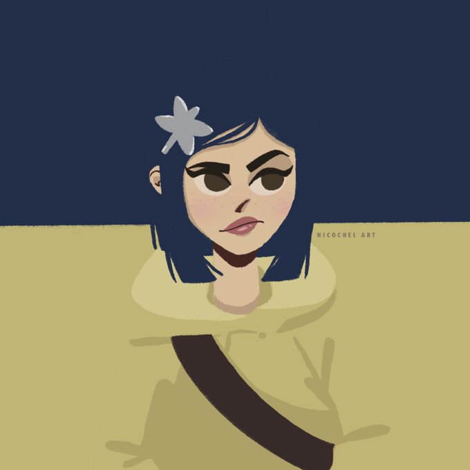day 22 of #nicochelartober: coraline 💙💛 check out my shop here ⬇️ 🛍: etsy.me/31ZG0VM #inktober #artober #coraline