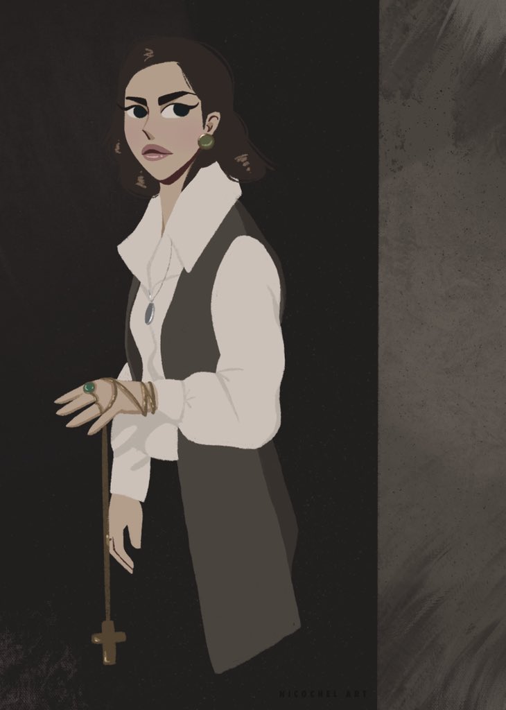 day 14 of #nicochelartober: the conjuring ft lorraine! my favorite “horror” film ever I must admit! #artober #inktober #lorrainewarren #theconjuring #jameswan #verafarmiga