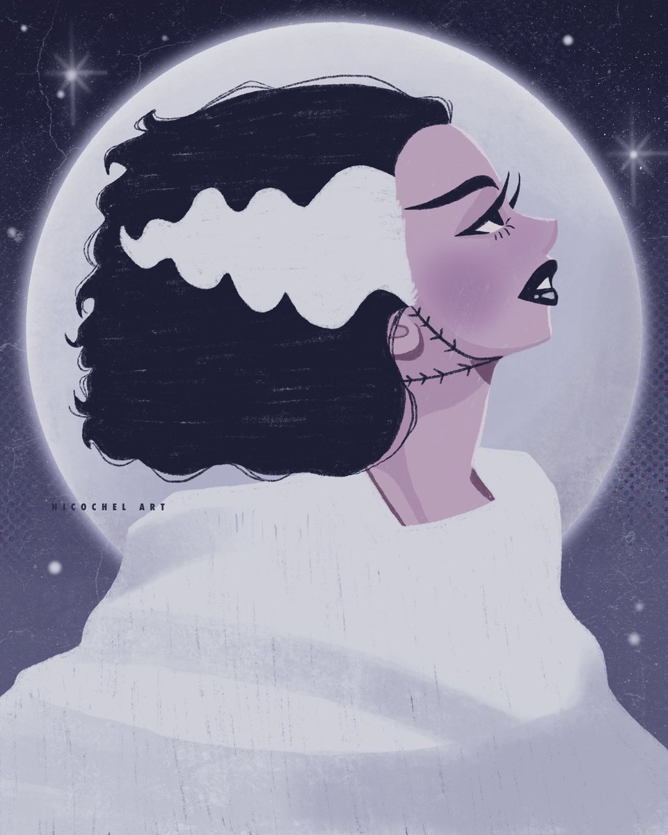 day 28 of #nicochelartober: (bride of) frankenstein! one of my favorite horror icons! I absolutely love how this one came out, now one of my favorite pieces 💜 #inktober #artober #frankenstein #brideoffrankenstein #universalmonsters #universalmonstersfanart