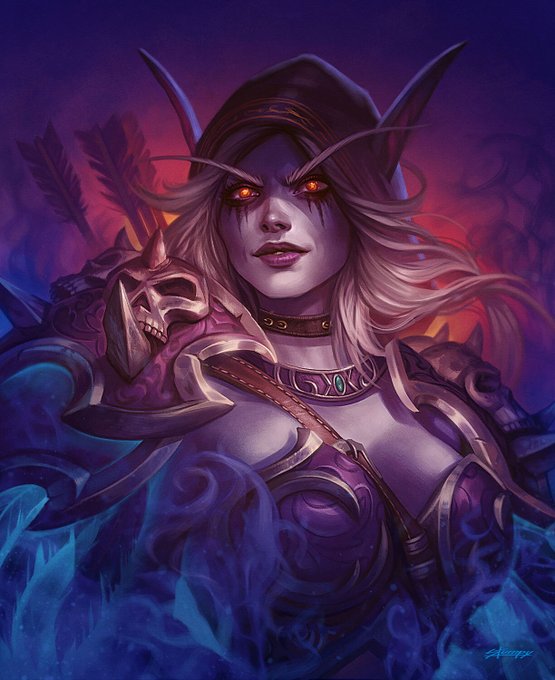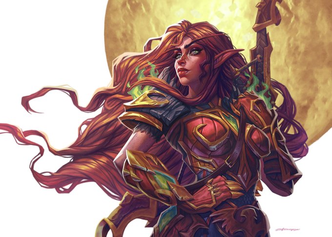 Yesterday on stream I took some time and wrapped up the Blood Elf Ranger painting for @stupidelfmain of their OC Erillyn Quickshot 🏹 Such a awesome character! Also she has freckles! #WorldOfWarcraft #fantasyart