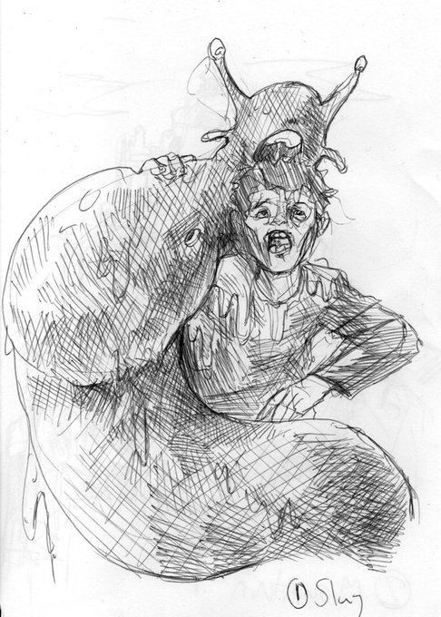 #Inktober2019 begins😲 This year I have a list of prompts devised by my girlfriend🤔 Today's word is "slug" #Inktober #drawing #art #artist #artistontwitter #inkdrawing #pendrawing