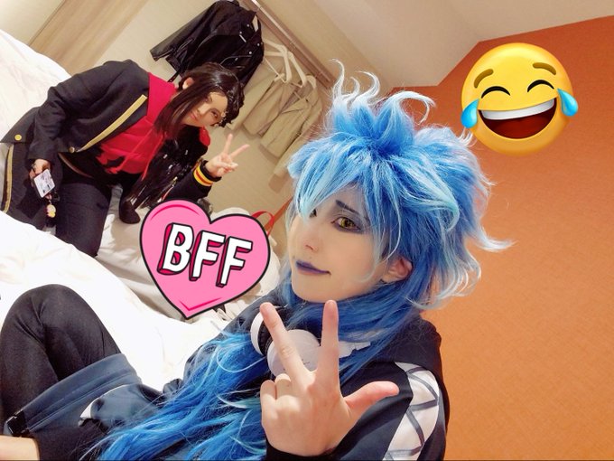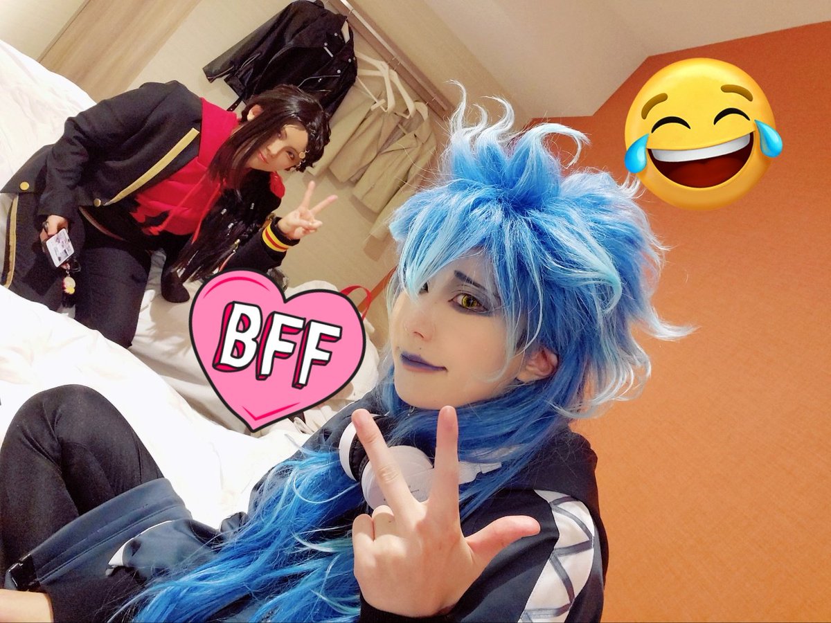 アコスタお疲れ様でした! ホテルでゆっくりなう!笑 クロトジャミル氏とツーショ(  ̄▽ ̄) 二枚目は疲れてスヤァしてるイデアです #アコスタ #アコスタ池袋