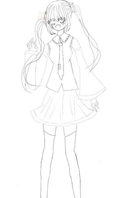 1 5 #初音ミク #イラスト ベタ塗り終わった〜全身イラスト載っけようとすると顔見切れるのなんで? 22/08/22 12:32