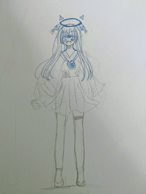 #イラスト #アナログイラスト お友達にあげるプレゼントのキャラデザ終わった〜今から一枚絵のラフ描く!