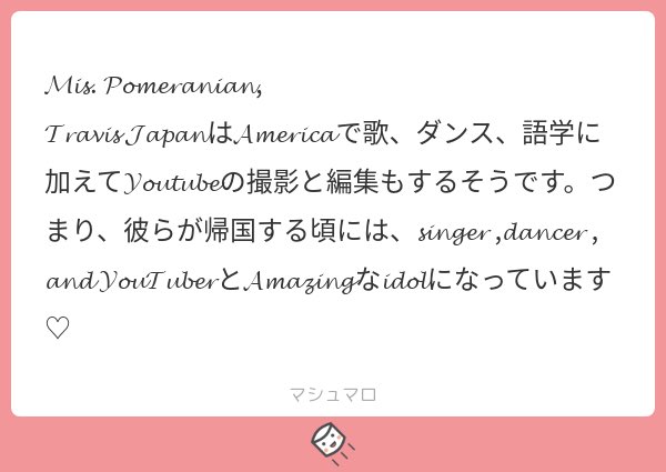 43 1031 渡米でTravisJapanが𝓣𝓻𝓪𝓿𝓲𝓼 𝓙𝓪𝓹𝓪𝓷になり起こった悲劇3コマです。次回、「オタク、ちゃんと対応しようとする」お楽しみに! 22/03/06 17:05