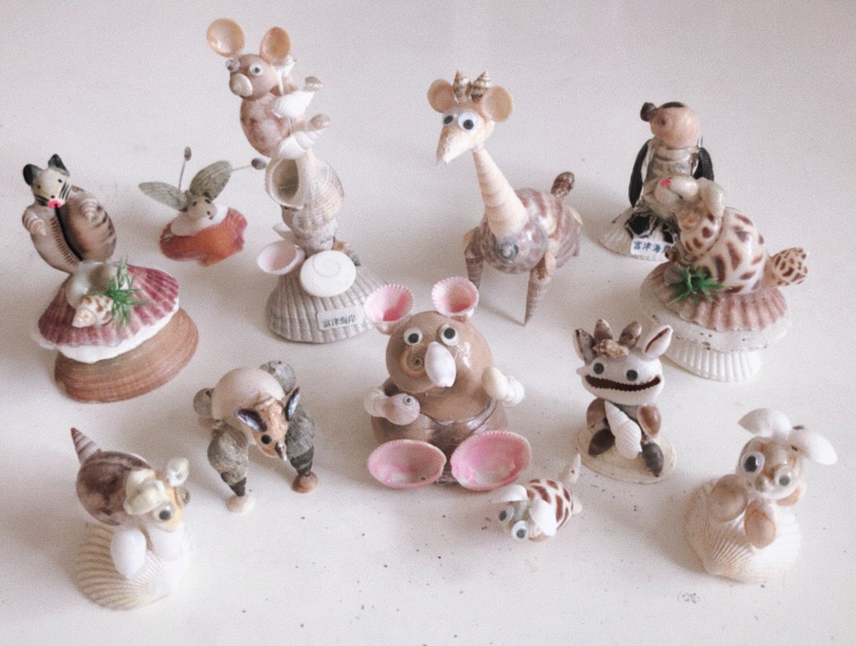 今日は貝細工屋に行ってきた 良質すぎるおじいアート…80代師匠とおじさんの二人が作った貝の世界みてwwww 買ったものを並べてみたけど可愛すぎて発狂もんだろwww