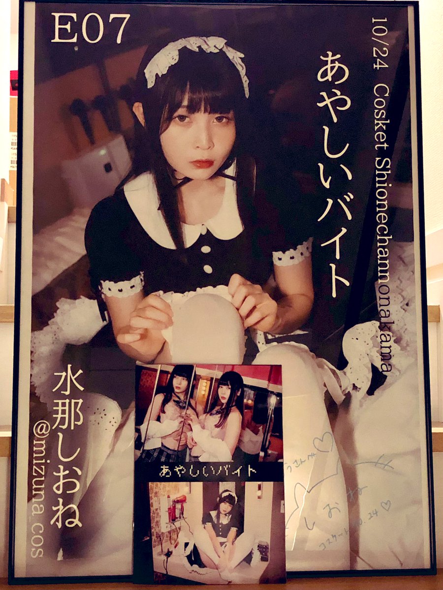 2021.10.24 コスケット 1部 水那しおねちゃん @mizuna_cos 新刊のあやしいバイト シーン毎セリフを妄想しちゃいました!えちえちでした♡ 次作 紙の質感UPに期待 #無許可掲載!? #ポスター額縁入れました #ミディアムボブ似合いすぎ