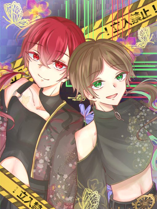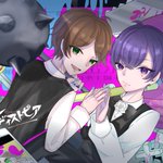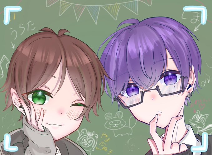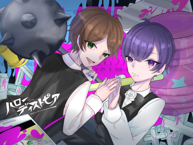 #うらしま5周年カウントダウン企画 💚うらしま5周年まであと3日💜 「ハローディストピア」のお二人を描かせていただきました! うらしまの歌ってみたのなかでも特に好きな楽曲です✨ 上記タグに素敵なイラストたくさんあるのでぜひ見てください🥰🙌 #うらたぬ王国の美術館 #しまーと