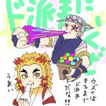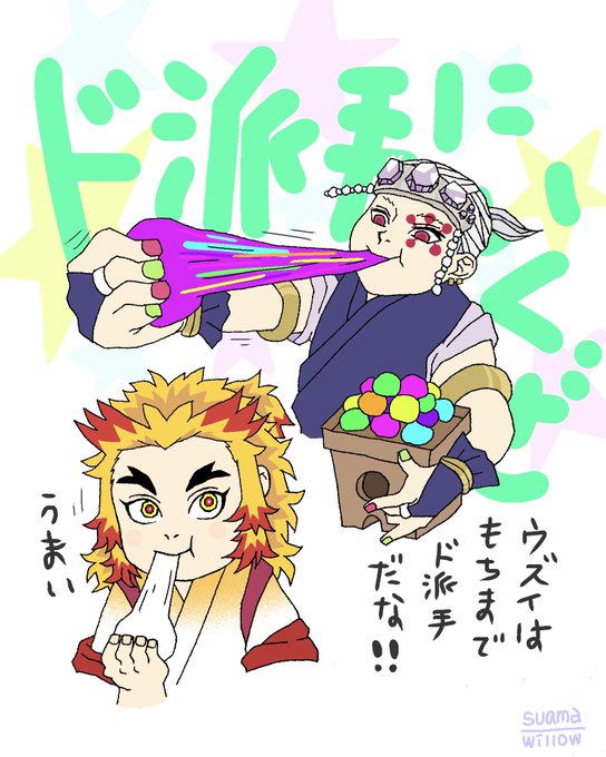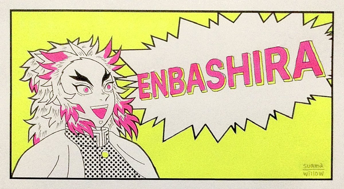 二流印刷感満載のアメコミ風 (ダイソー蛍光アルコールマーカー使用) 無限列車TVシリーズもド派手にいこうぜ! そしてどこ見てるかわからない煉獄さん大好きだ!! #鬼滅の刃イラスト #煉獄杏寿郎イラスト