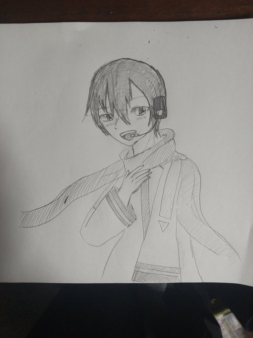 #いいねした人の画像欄覗いて素敵絵を私の絵柄で描いてもいいですか ぐみんみん(@GUMI_9361)のKAITOさん描かせてもらった〜!!(アイコン) ポーズも兄さんらしさ溢れてて綺麗で好き!!