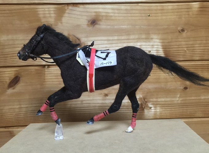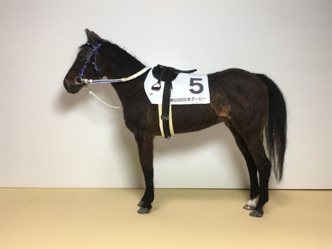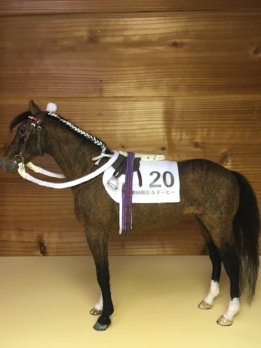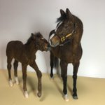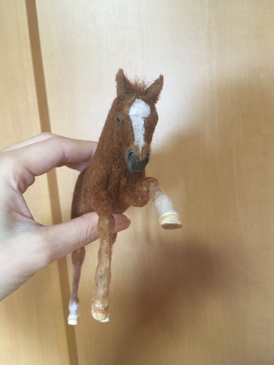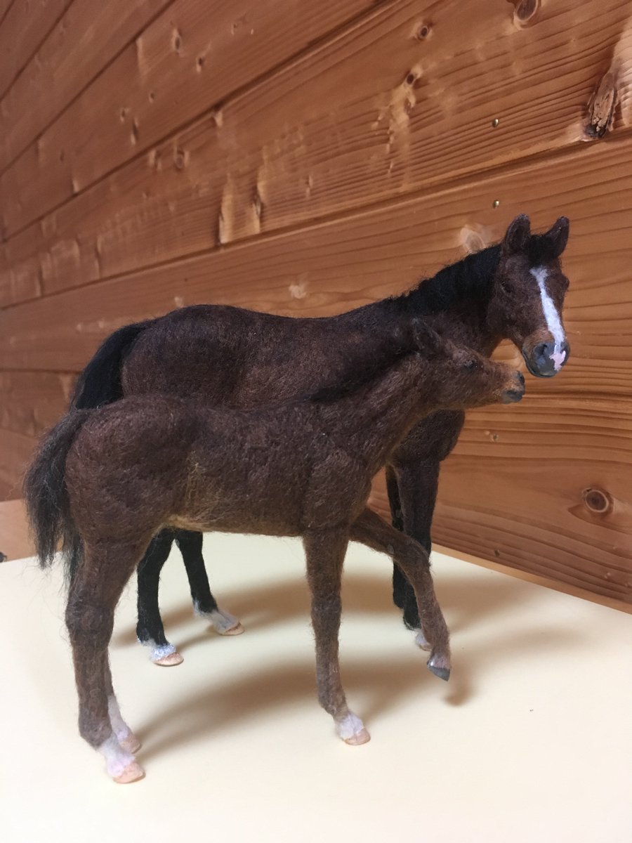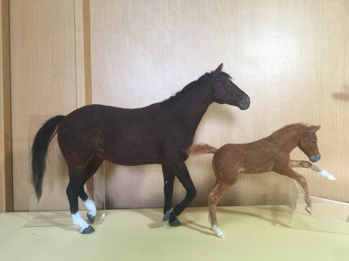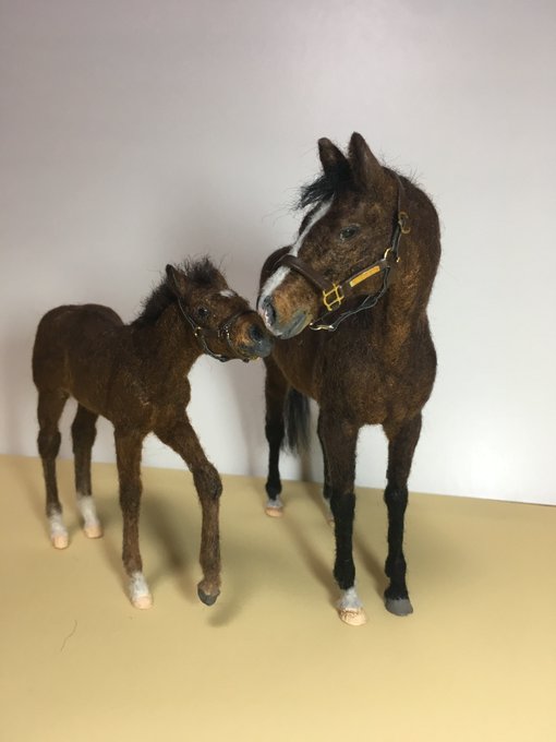 羊毛フェルトホース第五弾です。仔馬の頃のディープインパクトと母ウインドインハーヘアをイメージして作りました。写真だと本来の良さが出ないのが本当に残念!製作自体は少しずつ上達してきたかなぁ。 #ディープインパクト #ウインドインハーヘア #羊毛フェルト