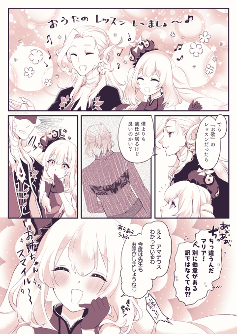 マリー&アマデウス(&サリエリ) 追加ボイスが衝撃だったので衝撃のまま描きました 画面の都合上マリーちゃんのお帽子には小さくなって頂いております