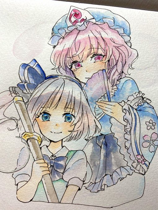水彩風にもできる 妖夢ちゃんも幽々子さまもめちゃくちゃ久しぶりに描いたよ!