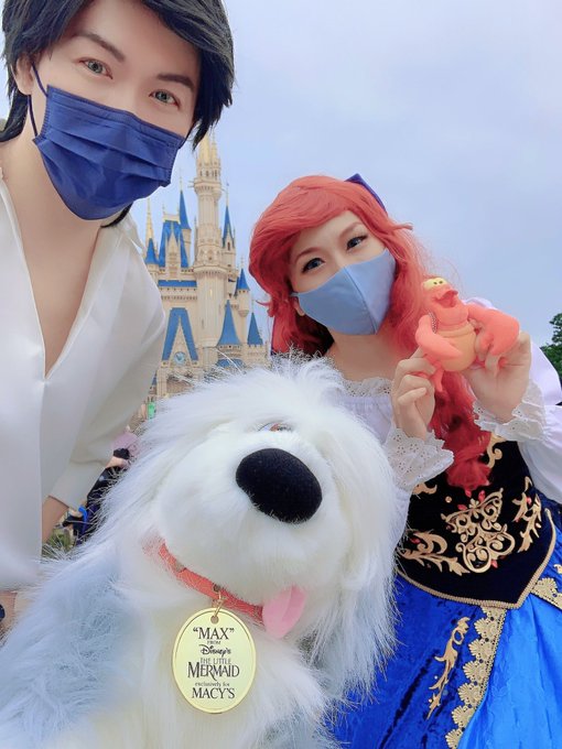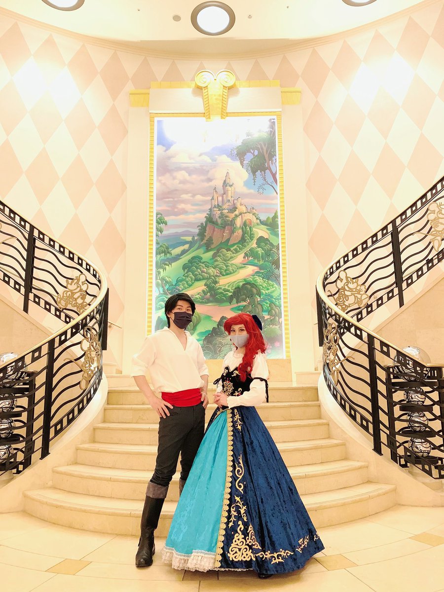 【#Dハロ仮装】 2年振りの仮装は大好きなアリエル☺✨前回スカートだったりリボンの位置だったり色々モヤモヤしてたからやり直せて満足👍🏻アンバのおねーさんが綺麗に撮ってくれたのお気に入り😊マックスは相変わらず大人気でした🙌🏻 エリック:戒にーさん #TheLittleMermaid #Dハロ #Dハロ仮装2021