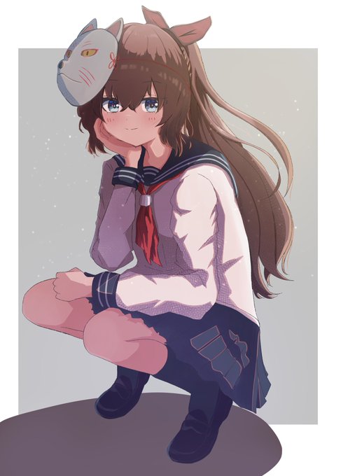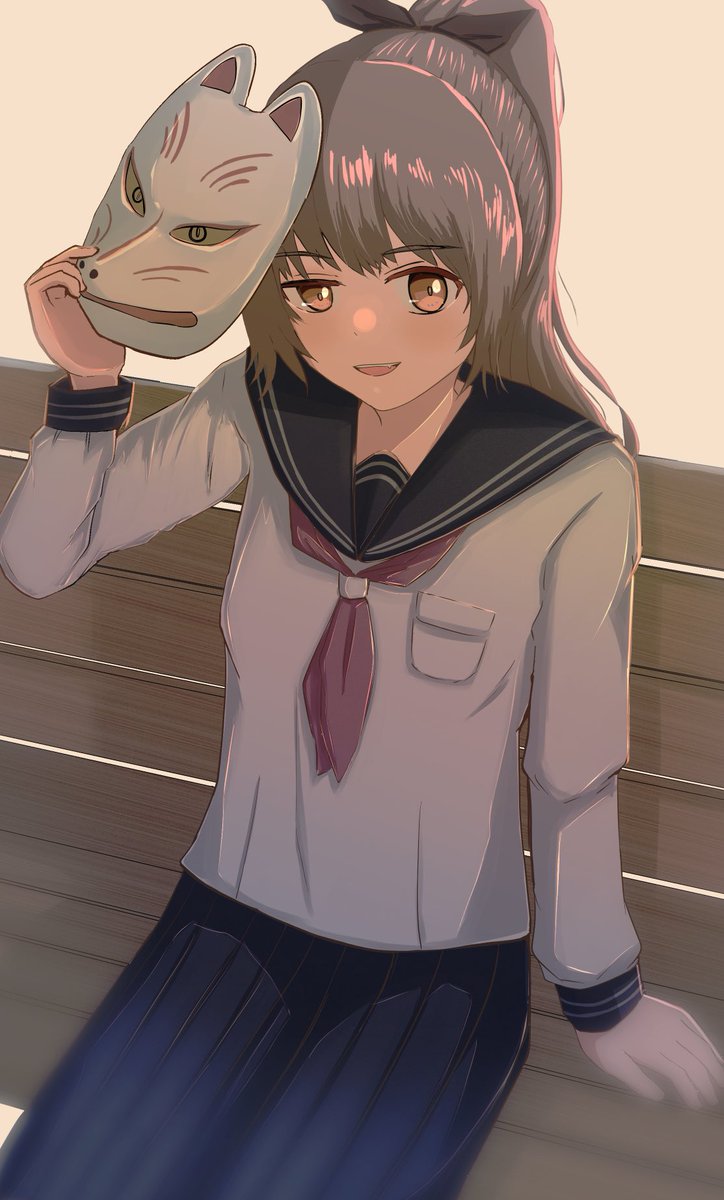 狐面とセーラー服 #絵描きさんと繋がりたい #セーラー服