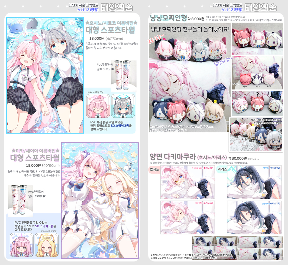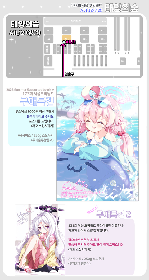 [RT=🩷❤️💕] 8월서코 인포입니다. ✨부스명 : 태양의숲 🤍부스위치 : A11,12 (양일) 🌟블루아카이브, 원신, 홀로라이브, 최애의아이 아래 링크에서 더 크게 보실 수 있습니다. 행사장에서 뵈어요!! 감사합니다!!!☺️🙏❤️ 🤍🩵comicw.co.kr/bbs/board.php?…