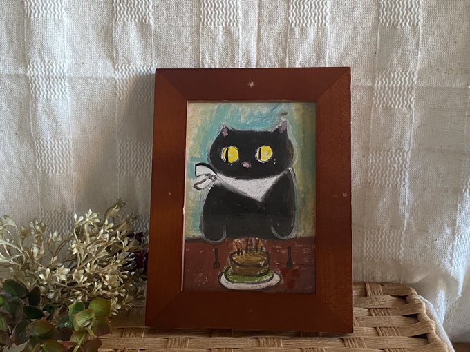 絵画。原画手描き【猫たちは一緒にデートして月を見る】 #絵が好きな人と繋がりたい #絵描き #絵文字 #絵日記 #絵日記 #猫のいる暮らし #猫のいる暮らし#猫部 #猫好き #アート #アート好きな人と繋がりたい #アートアクアリウム #スイーツアートの世界展 #アート