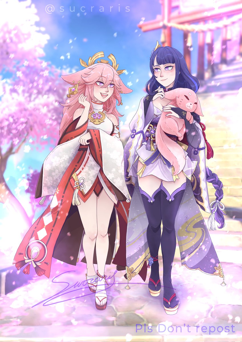 💕Rt & Shares are appreciated💕 Mi ilustración de #yaemiko y #Shogunraiden paseando por el santuario. #genshinimpactfanart
