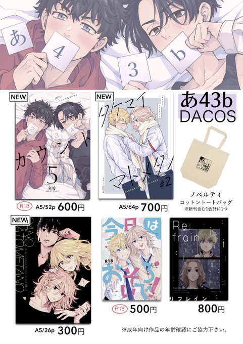最終回軸でタケマイにする本『Re:frain』をまた再版します 近日中に予約開始すると思います → ecs.toranoana.jp/joshi/ec/item/… 『HELLO,FUTURE』も少なめですが併せて再版しますのでご希望の方は通知設定などして頂けると! → ec.toranoana.jp/joshi_r/ec/ite…