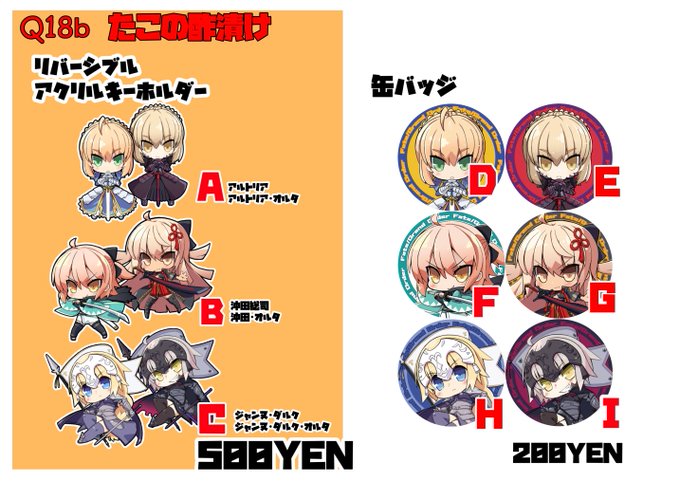 144 414 今回のリバーシブルアクリルキーホルダーは 沖田/沖田オルタ アルトリア/アルトリア・オルタ の2種+前回の再販になります。 明日あたりに改めて宣伝します。 18/08/03 03:41