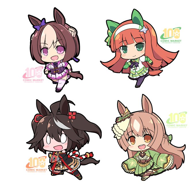 50 154 コミックマーケット100にてウマ娘のスペシャルウィーク、サイレンススズカ、キタサンブラック、サトノダイアモンドのアクリルキーホルダー出します! 入稿データに問題なければ!(4種各¥500) また、今生産分のみ背面にコミックマーケット100回記念ロゴをいれてます。よろしくお願いします。 22/08/01 05:33
