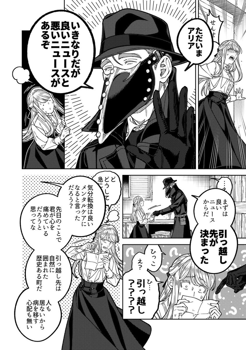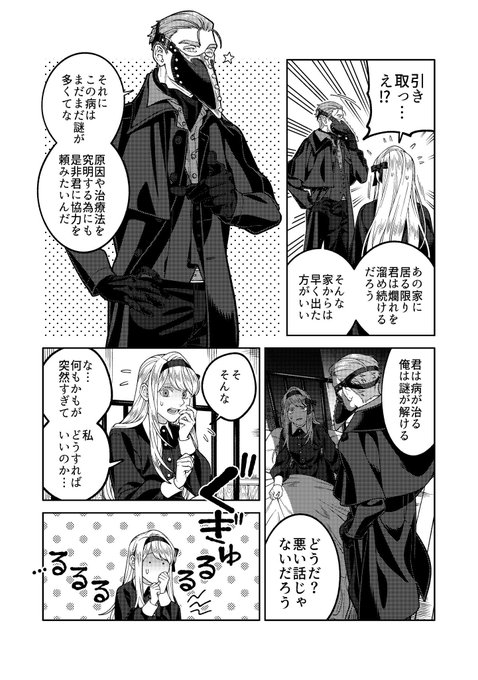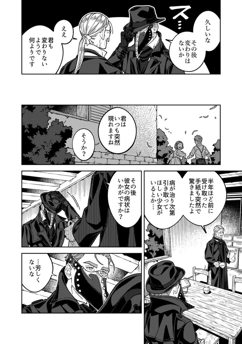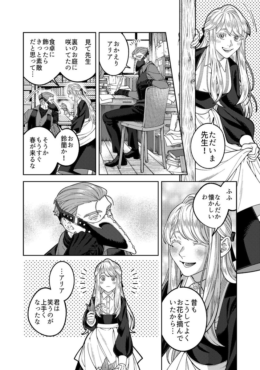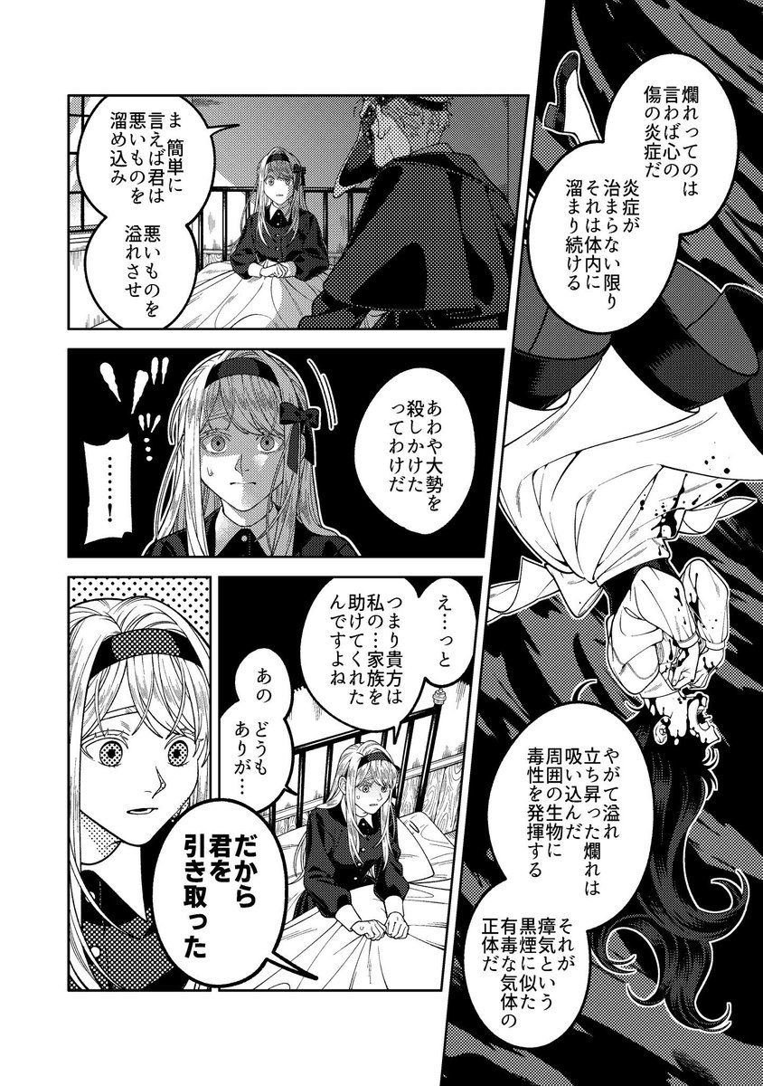 改めまして創作漫画の紹介を🙇♀️ 近代異国風の世界を舞台に、奇病を患った少女と怪しい医者のふたりが治療を通して過去と向き合う話です。漫画は固定ツイートか下記リンクから読めます。読んで頂けましたら嬉しいです…! pixiv.net/user/23236662/…