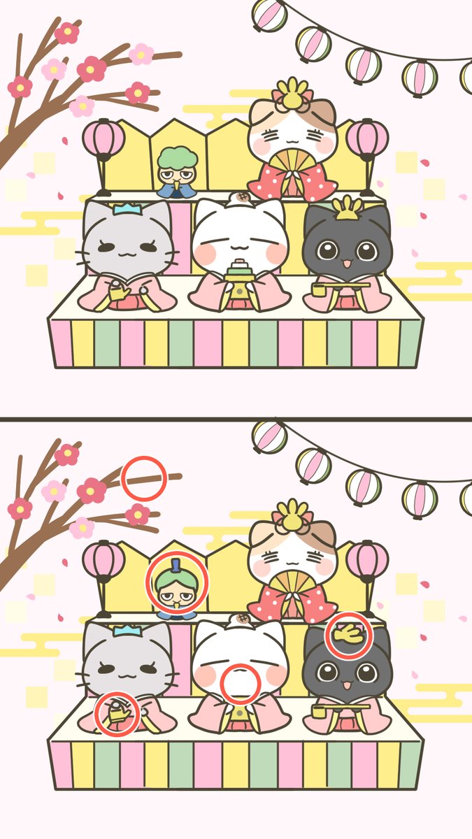 3月の間違い探し🐾👀 違うところは5つあります😆 是非遊んでください!1箇所難しいかも?🥳 答え合わせは明日17時🌟 #イラスト #猫 #猫好きさんと繋がりたい