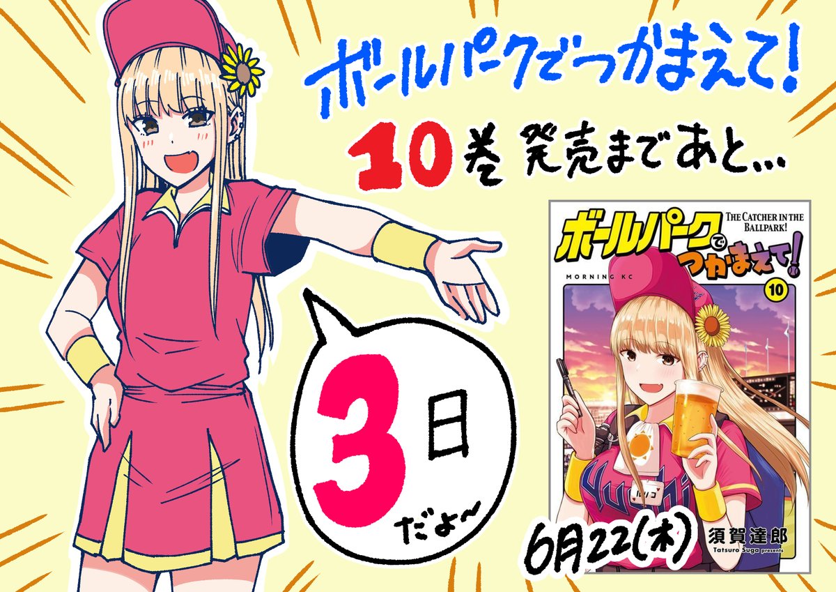 【お知らせ】 講談社モーニングにて連載中 『ボールパークでつかまえて!』10巻本日発売です! おかげさまでついに2桁巻数! ルリコをはじめ、これまでに登場したキャラクターの変化に注目の1冊です。 新キャラも続々と登場します! よろしくお願いします! #ボールパークでつかまえて