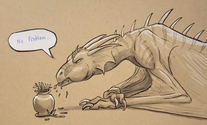 Day 6 of #Inktober, #bouquet. I didn't want to draw a bouquet, so I had my boy Paladyn eat it for me. Thanks, bud! #Inktober2022 #ink #copicmarkers #copic #copics #sketch #drawingchallenge #traditionalart #drawing #dragon #dragons #fantasy #artistsontwitter #artistsoftwitter