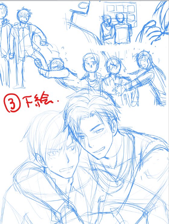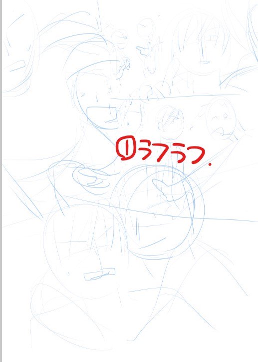 #このタグを見た人はラフ画とその完成絵を見せる ①わけわかんないですね ②人間らしくなります。上のコマは迷走中。 ③ラフ…ではなくてこれは下絵。 ④完成✨