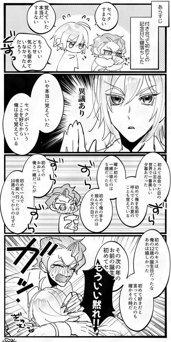 【 シルセベ 】落ちる日のぼくら【再録】 | 杉林 pixiv.net/artworks/10328… 賑やかしたかったのでわたしも最初の本載せました~~~~~~~あとで続きも載せます✌ セベデレに戸惑うシルの話です!