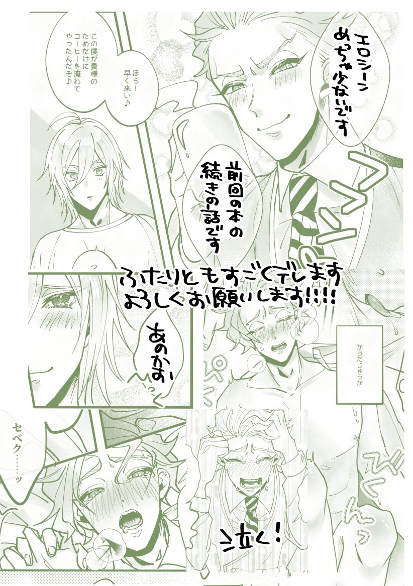 【 シルセベ 】溶ける夜の俺たち【新刊サンプル】 | 杉林 pixiv.net/artworks/93159… 10/3の新刊サンプル、ちょっとだけページ追加して支部にも上げました! よろしくお願いいたします~!