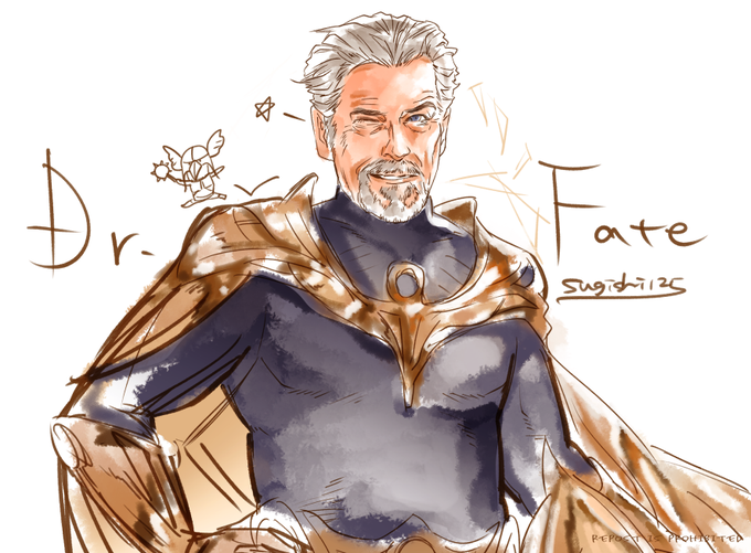 Marvelの魔術師ドクター・ストレンジとDCの魔術師ドクター・フェイト。中の人的にはシャーロック・ホームズとジェームズ・ボンド、並べて描きたかったんだ~! #BlackAdam #DrFate #DrStrange