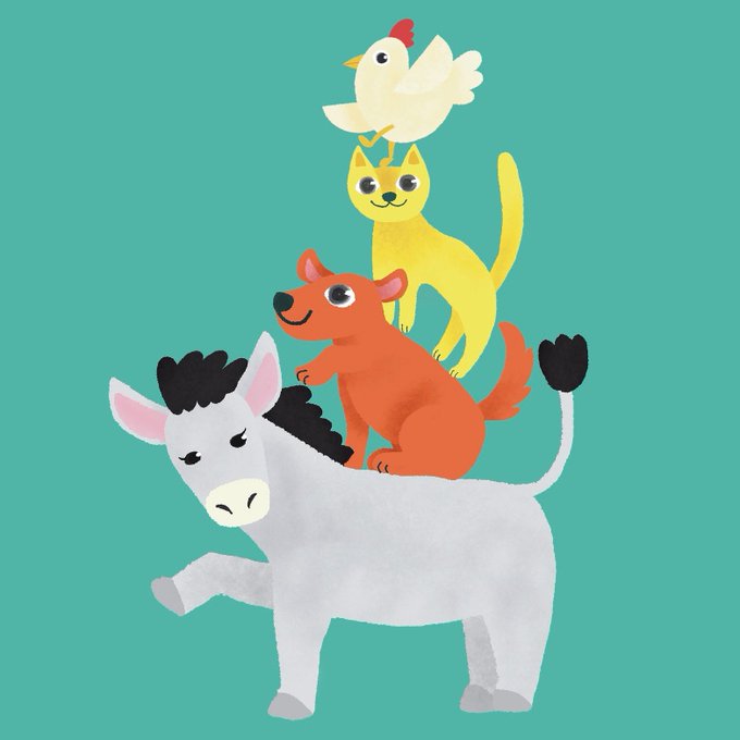 ブレーメンの音楽隊 ♪♪🐴🐶🐱🐔♪♪ #イラスト
