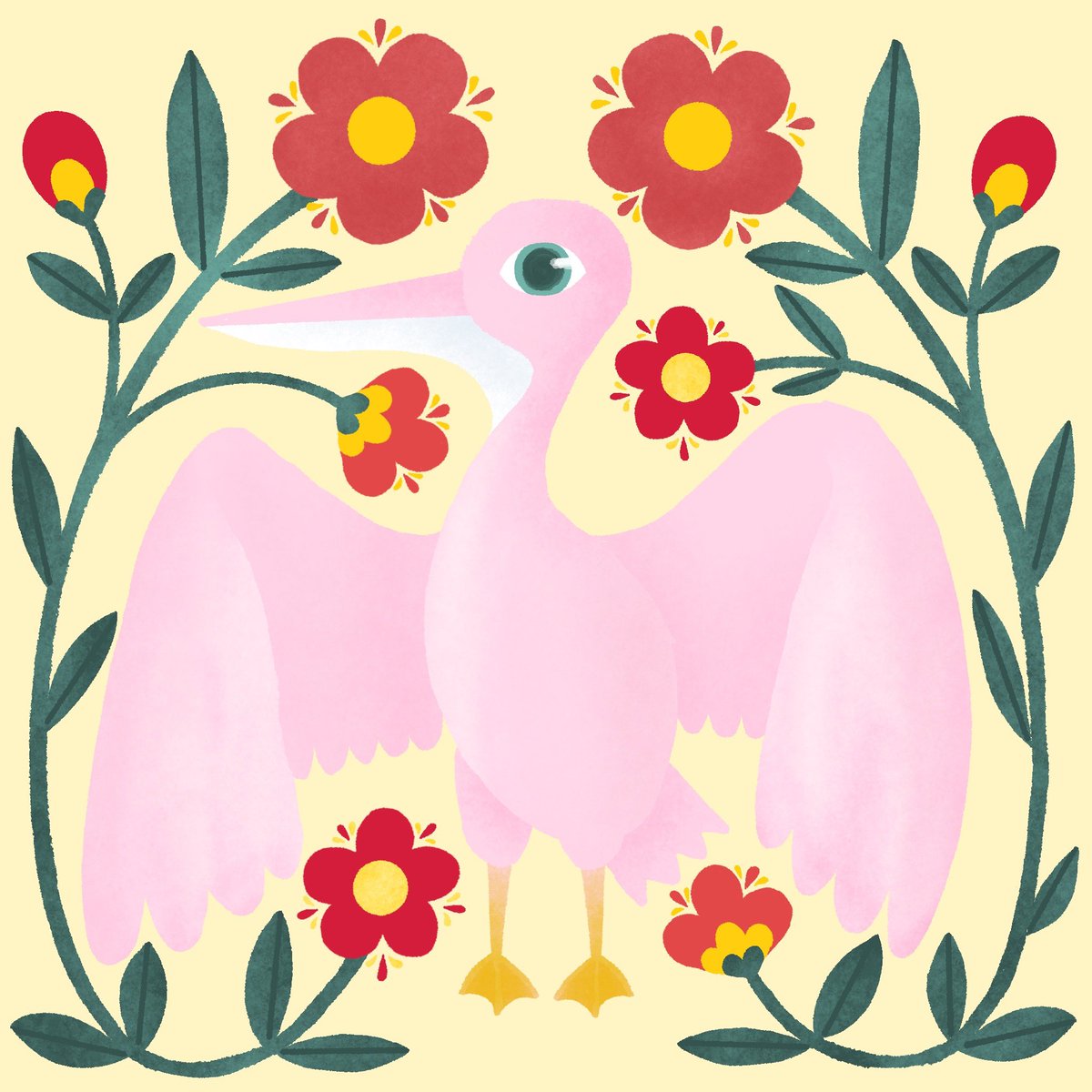 日本語でモモイロペリカンと呼ばれる種類は英語だとWhite pelicanというそうです。桃色になることもある白いペリカンで、どっちに注目して命名するかの違いがおもしろいですね。 #イラスト