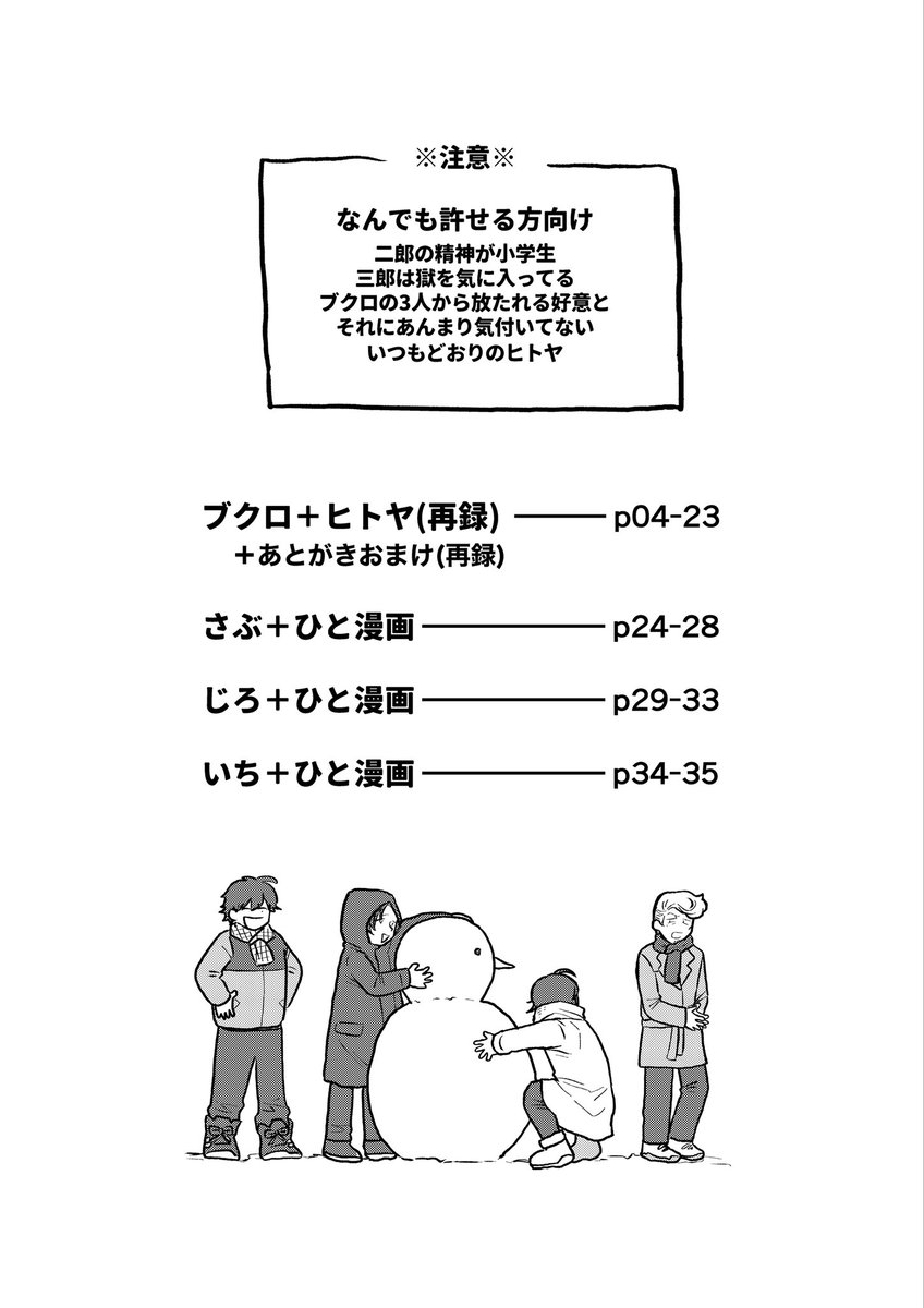 37 115 5/28クレリリ新刊【5号館う24b】 BUKUHITO fun book --全年齢 --30ページ --300円(会場販売価格) 内容は画像2枚目のとおりで、ガキ共に好かれる獄のお話。書き下ろしは12ページになります。 イベント後通販予定あり🌼 23/05/24 18:42