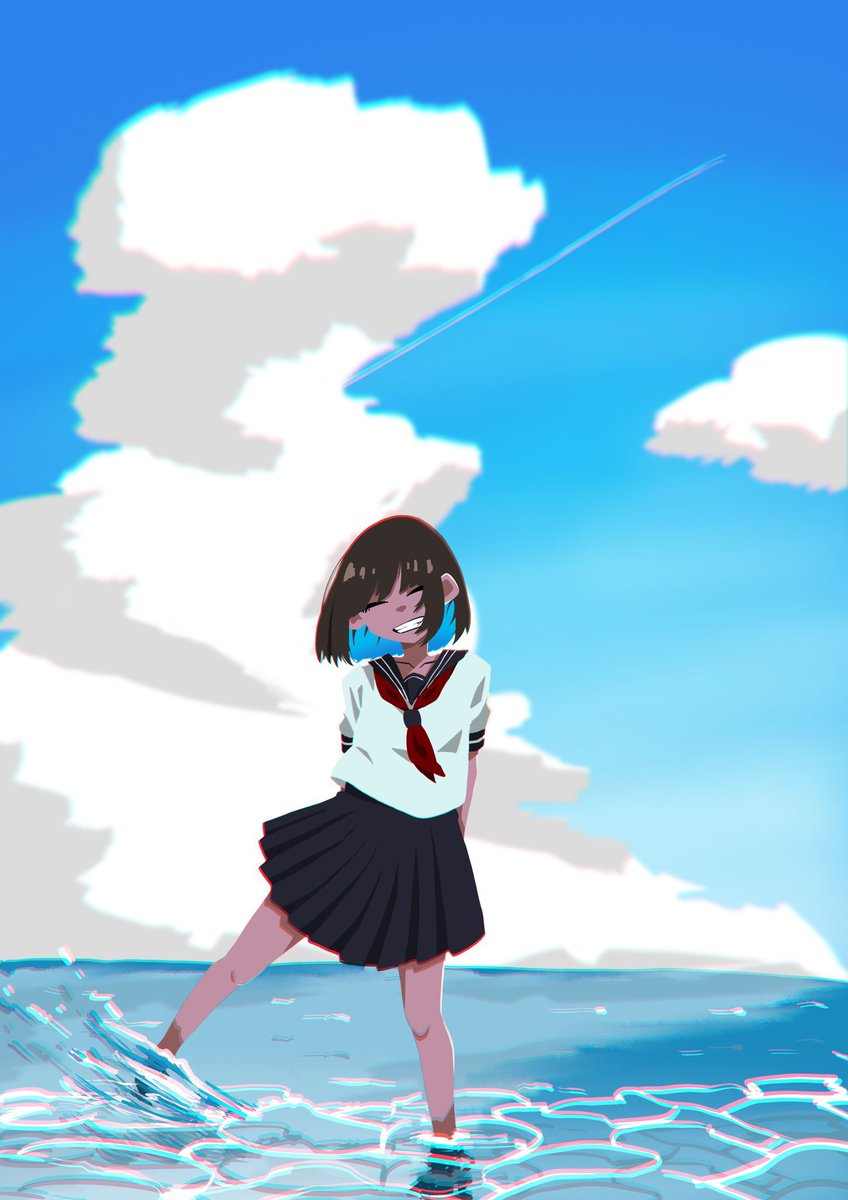 8月も終わるので夏っぽいイラストもっかい投稿しとく #イラスト