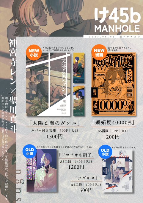 50 142 プリコンお品書きです。 新刊1冊購入で文庫本がもう一冊付きます🫶 23/01/12 20:20