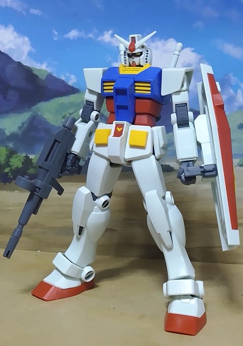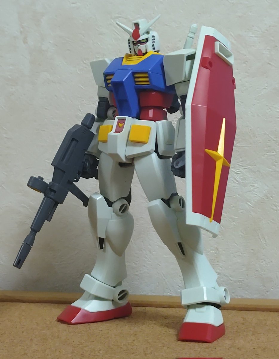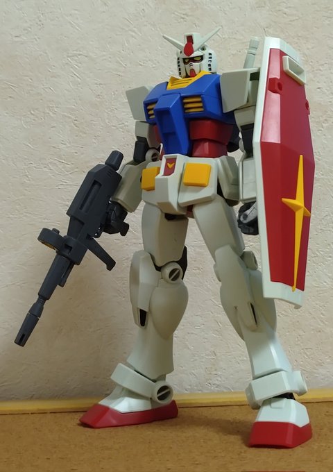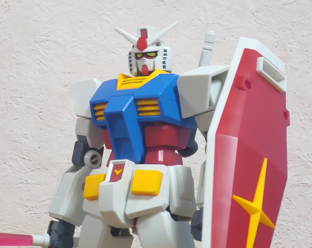 #ガンプラの画像貼るとRTされると聞いて #ガンプラ 簡単な改修をひたすら重ねまくってアニメ風を目指したエントリーグレードのガンダムみてほしい