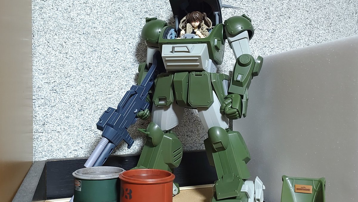 #夜のフィギュア撮影会 「今年買った最高のフィギュア」 届いたばっかだけど、何年も憧れてたこのやまとのスコープドッグですかね。 自作したうちの子の愛機として末永くよろしくお願いします。