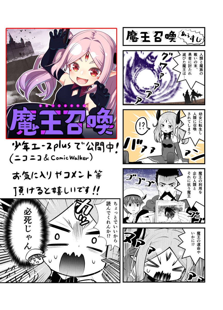 「魔王召喚」少年エースplusで公開中! ニコニコのお気に入り数次第で連載になるかも? コメントやお気に入り、感想ツイートや拡散など頂けると嬉しいです! ニコニコ: seiga.nicovideo.jp/comic/55267 ComicWalker:comic-walker.com/contents/detai… #漫画が読めるハッシュタグ #マンガが読めるハッシュタグ twitter.com/sugy0/status/1…